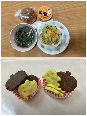 給食やおやつもハロウィンメニューで、子どもたちは大喜びでした✨みんなでおいしくいただきました。
