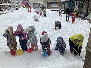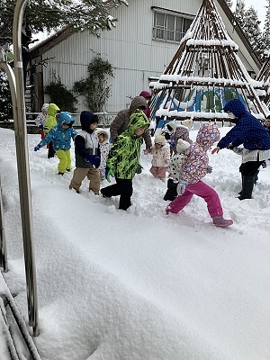 園庭には雪が積もり、子どもたちは大喜び!さっそく雪遊びを楽しみました⛄寒さを忘れるくらいに夢中で歩いたり、そりすべりをしたり。冬ならではの体験をしています。今後もたくさん雪あそびができるといいです!